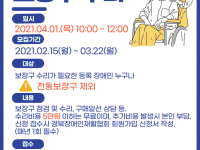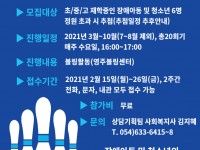 영장복 공고 21 – 03 영주시장애인종합복지관 장애인집합정보화교육 정보화교사 모집 공고 영주시장애인종합복지관에서는 장애인복지에 관심과 열정을 가진 장애인집합정보화교육 정보화교사를 아래와 같이 모집합니다. 1. 모집분야 및 인원 : 정보화교사 1명2. 자격조건 - 관련학과 졸업자(예정자), 관련 자격증(기사 이상) 소지자3. 채용조건 : 계약직4. 계약기간 : 2021. 03. 01 ~ 2021. 12. 31(2022년 장애인집합정보화사업 선정 시 계속 근무가능)5. 급여 : 월2,240,000원(3월~11월), 월1,830,000원(12월) / 종사자수당 월 140,000원 6. 근로조건 : 주5일 근무(09:00 ~ 18:00)7. 지원서류 가. 입사지원서1부.(본관 소정양식)-기재한 사항에 대해서는 서류전형 합격 후 별도의 증빙자료를 제출받아 사실여부를 확인 할 예정이니 증빙 가능한 사실만 기재 나. 자기소개서(A4용지 2매 내외) 1부. 다. 개인정보제공 이용·동의서8. 전형방법: 1차 서류 심사 ▶ 2차 면접 시험(1차 서류전형 합격자에 한함)9. 우대사항 가. 일정자격을 갖추고 업무수행이 가능한 등록장애인 가산점 부여 나. 영주시 거주 가능한 자 다. 컴퓨터 강사 유경험자 우대10. 채용일정: 채용공고 및 원서접수서류전형 합격자 발표면접시험최종합격자 발표21. 2. 3(수) ~ 2. 17(수)홈페이지 별도 공지홈페이지 별도 공지홈페이지 별도 공지11. 접수 및 문의: 우편 및 이메일(E-mail: yjrehab@yjrehab.or.kr) 가. 접수처: 경북 영주시 원당로 52번길 25 영주시장애인종합복지관 나. 문의: 운영지원팀장 손선미(☎ 054-633-6415)12. 기타 -. 제출된 서류내용이 누락되었거나 허위로 판명되었을 경우 응시대상에서 제외 할 수 있음. -. 최종합격자는 채용신체검사서 및 범죄경력증명서, 아동학대, 성범죄경력증명서를 제출하여야 함.(미제출시 채용 취소) 영 주 시 장 애 인 종 합 복 지 관 장