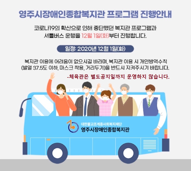 영주시장애인종합복지관 프로그램 및 셔틀버스 진행안내