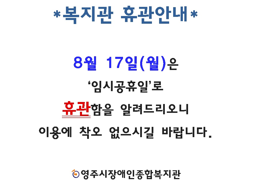 임시 공휴일 휴관안내(20.8.17)