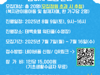 네이버폼 신청 링크 https://naver.me/GplNvWEO보호자 및 참가대상 아동청소년의 많은 관심과 참여를 바랍니다.