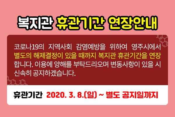 <긴급공지>코로나19로 인한 복지관 휴관기간 연장안내
