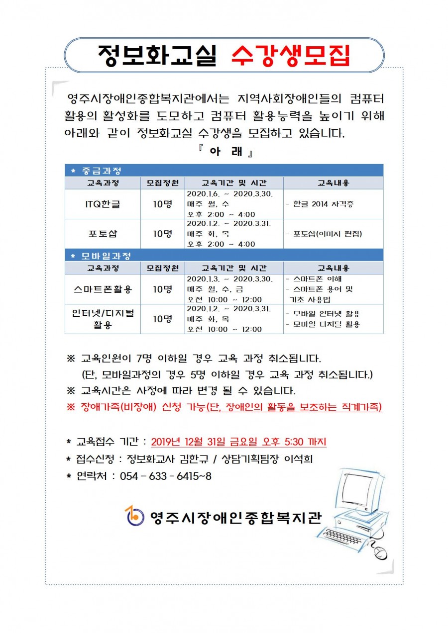 2020년 1기 정보화교실 교육생 모집