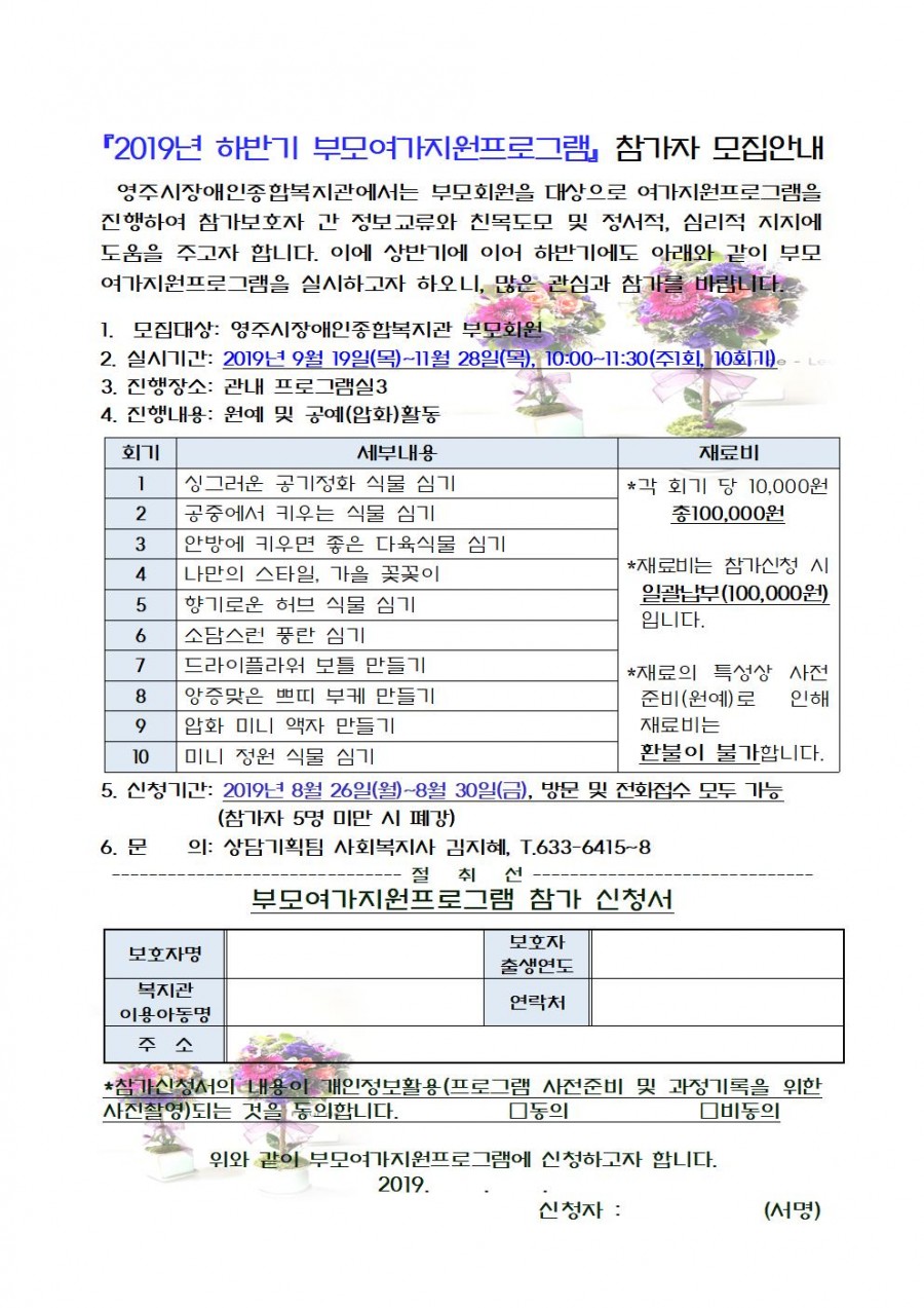 2019년 하반기 부모여가지원프로그램 참가자 모집 안내