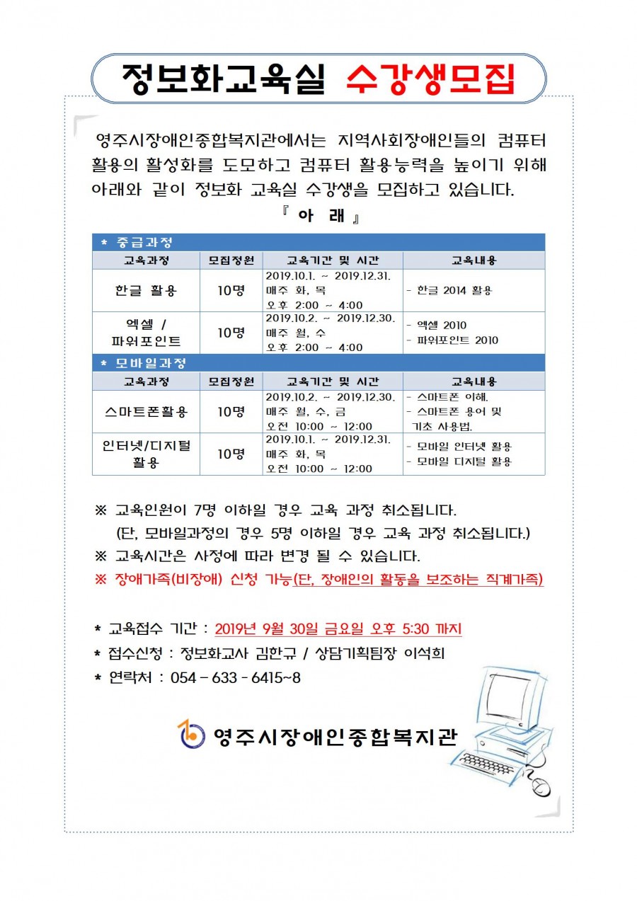 2019년 4기 정보화교실 수강생 모집
