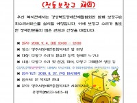 * 복지관 휴관 안내 * 「제12회 한마음체육대회」로 아래와 같이 복지관 휴관하오니, 이용에 착오 없으시길 바랍니다. 일시 : 2018년 9월 14일(금) 문의: 운영지원팀 이승배(633-6415) 영주시장애인종합복지관장