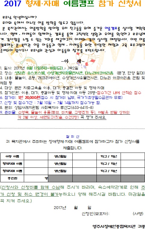 2017년 여름 형제재매 캠프를 알립니다~