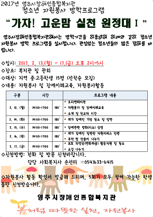 "가자! 고운맘 청소년 자원봉사 원정대" 실시 > 공지사항