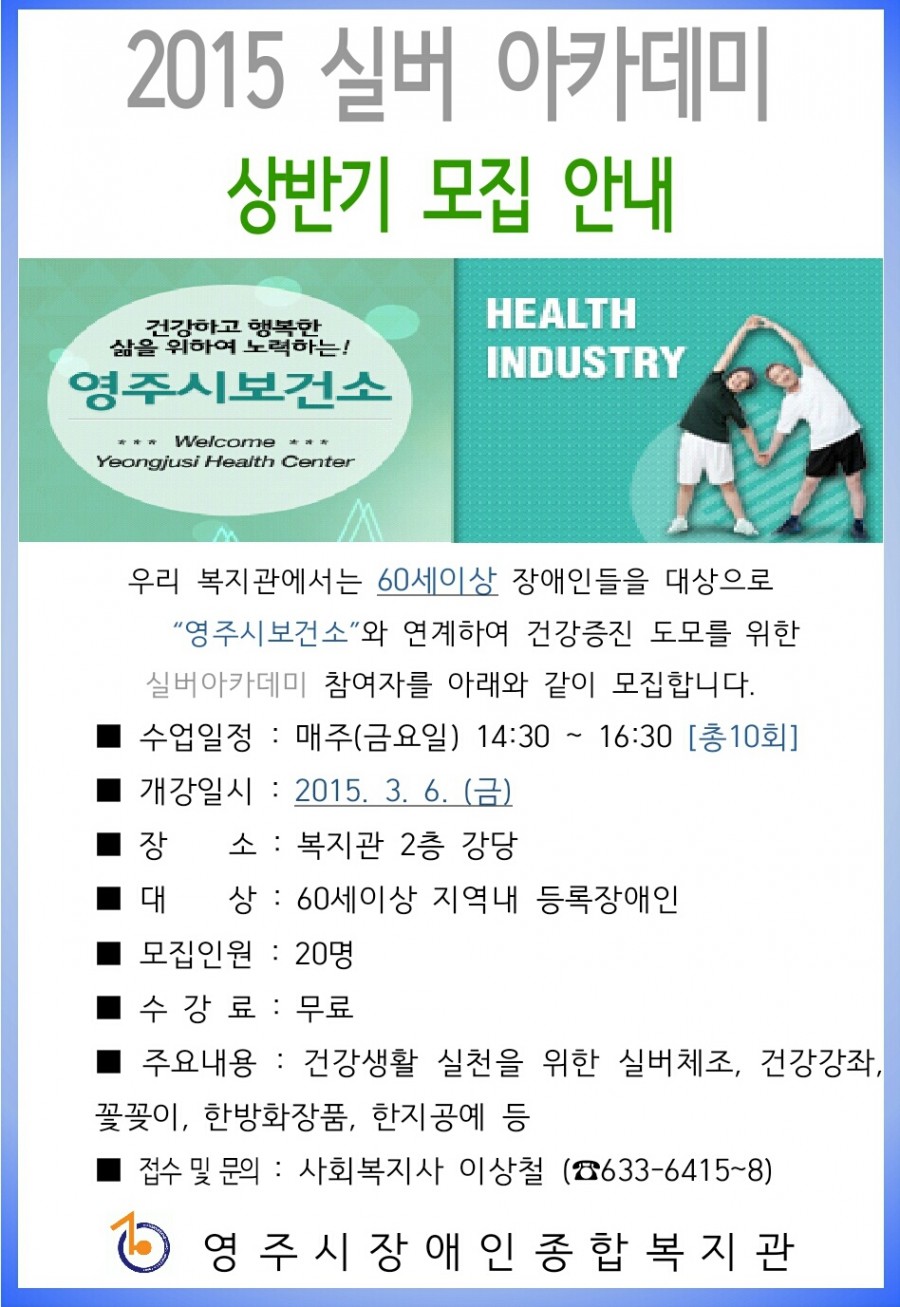 “영주시보건소”와 연계하여 건강증진 도모를 위한 실버아카데미 참여자를 모집합니다.