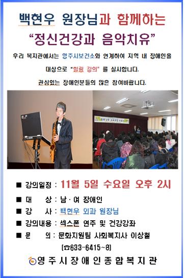 백현우 원장님과 함께하는 "정신건강과 음악치유" 강좌 안내