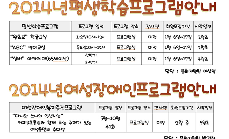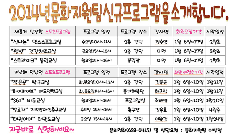 2014년 스포츠 및 취미여가프로그램 안내(클릭하여보세요)