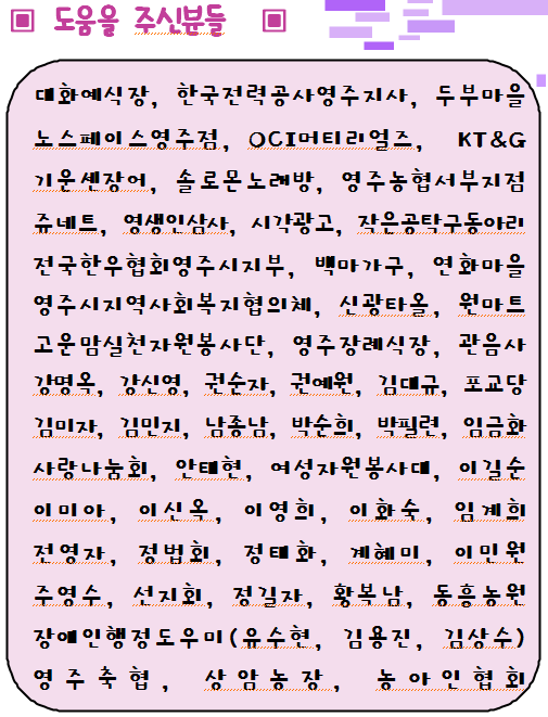 제7회 영주시장애인한마음체육대회에 도움을 주신 분들