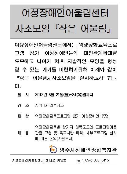2012년 여성장애인어울림센터 자조모임 실시 > 공지사항
