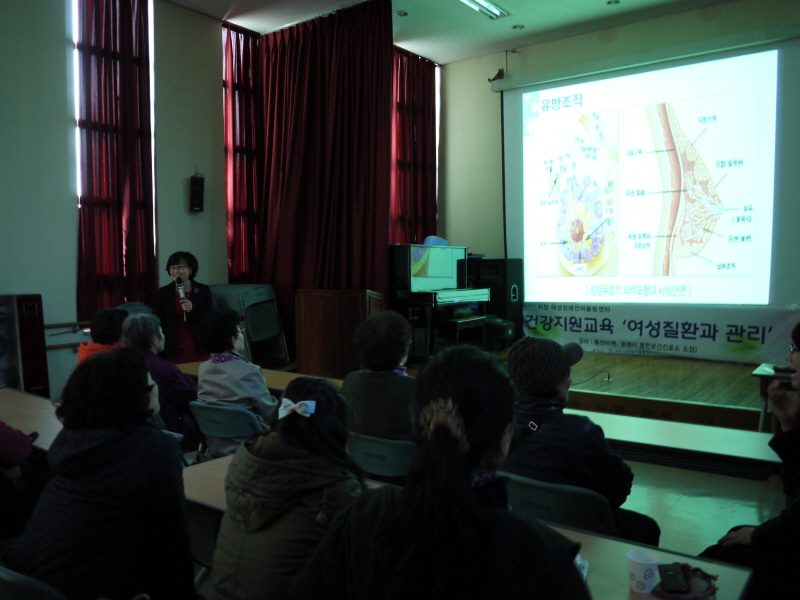 여성장애인어울림센터 이용자를 대상으로 "여성질환과 관리"라는 내용의 건강지원교육을 실시하였습니다. 추운날씨에도 불구하고 본 교육에 참가해주신 여성장애인들에게 깊은 감사를 드립니다.