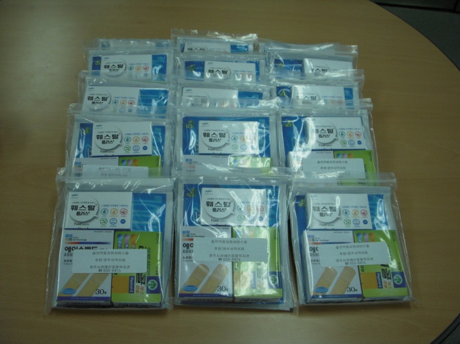 영주시약사회에서 후원해 주신 의약품을 재가 장애인 50세대(구충제 20세대, 의약품 30세대)에 전달해 드렸습니다. 매년 지역장애인의 건강한 삶을 응원하고 지지해 주시는 영주시약사회에 진심으로 감사드립니다.
