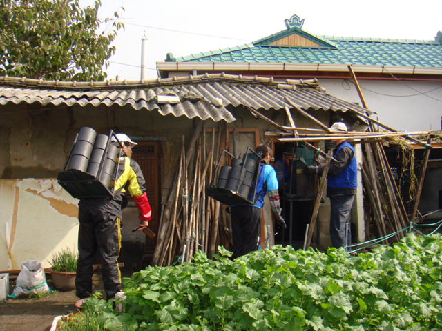 -. 내용: "지게꾼" 봉사단체와 담당복지사가 각 세대에 방문하여 연탄 전달
