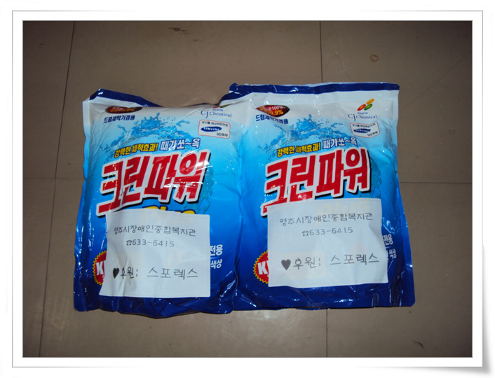 영주스포렉스에서 후원한 세탁용세제(2포씩)를 재가대상자가정(63세대)으로 전달 하였습니다.