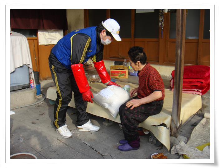 -. 내용: "지게꾼" 봉사단체와 담당복지사가 각 세대에 방문하여 연탄 전달