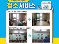 가사지원사업 '청소서비스' 진행일시: 2021년 7월 21일(수), 10:00 ~ 11:30장소: 재가 장애인 가정재가복지서비스 대상자 정**, 김**님 가정을 방문하여 실내 청소 및 곰팡이 제거, 물품정리를 진행하였습니다. ^^