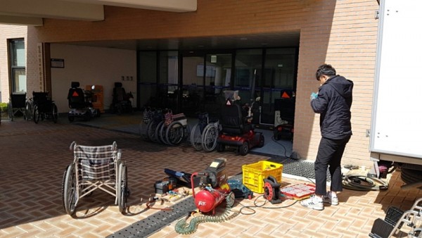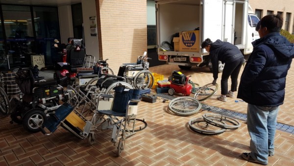 복지관에서는 2018년 3월 20일 (화) 10시부터 12시까지 경상북도장애인재활협회와 연계하여 수동휠체어에 대한 수리와 점검이 이루어졌고, 지팡이와 목발, 워커의 고무발판 교체, 전동스쿠터 점검 등 보장구 수리가 이루어졌습니다.