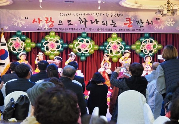 ☐ 2016년 송년행사 자리를 마련하여 다양한 축하공연을 관람하였다. 또한, 복지관 프로그램 및 사업을 홍보하며