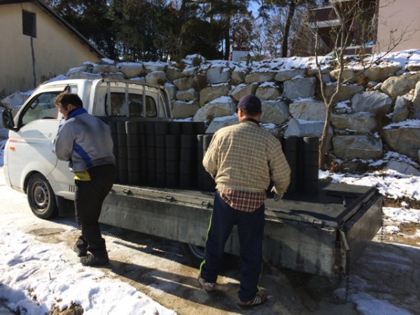 장수농공단지 내 "대림포장" 의 후원을 받아 경제적인 사정으로 겨울철 난방에 어려움을 겪고 있는 재가 장애인을 선정하여 아래와 같이 연탄을 전달 하였습니다.