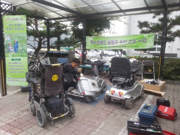 장애인 전동휠체어(스쿠터) 안전교육 및 점검 수리를 도로교통공단경북지부와 사단법인한국척수장애인경북협회와 연계하여 아래와 같이 실시 하였습니다.