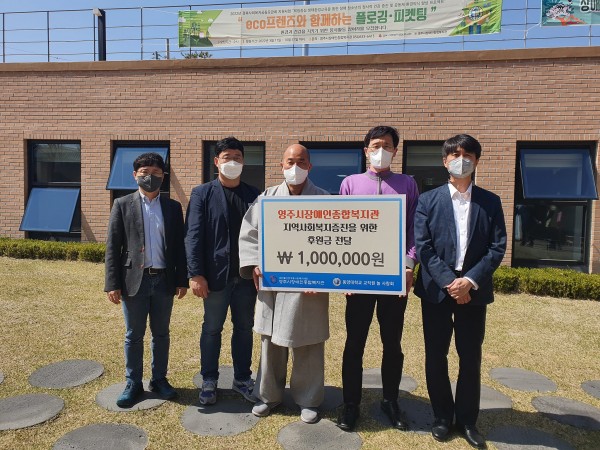 2022년 4월 8일(금) 14시, 동양대학교 교직원 봉사단체 '늘사랑회'에서 본 관에 방문하여 후원금 1,000,000원을 전달하였습니다.