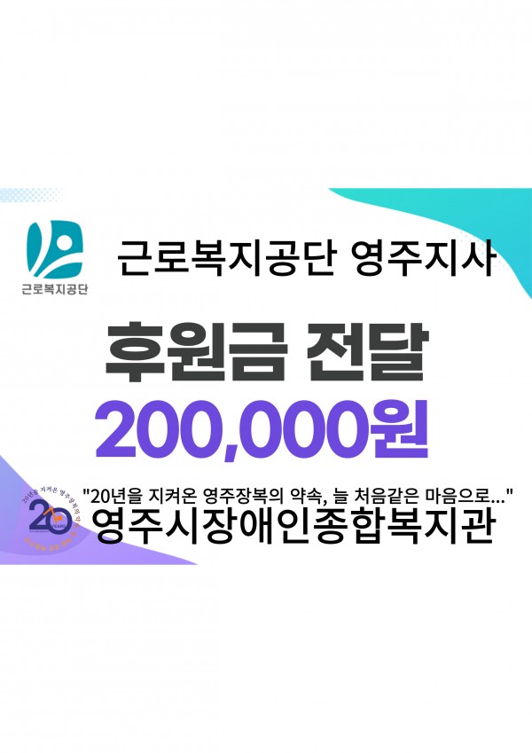 지역 장애인들의 어려움을 잊지 않고 도움을 주는 근로복지공단 영주지사 측에 깊은 감사의 인사를 전합니다.