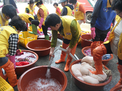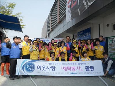 대한적십자사 경북지사/코레일 경북북부지사의 후원 및 봉사 지원으로 재가장애인 30세대의 겨울철 이불빨래를 해 드렸습니다.