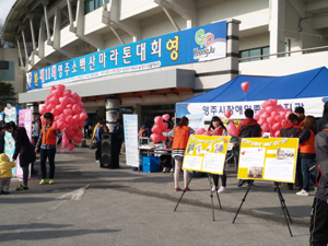 소백마라톤대회와 함께하는 2013년 영주시장애인식개선캠페인을 실시하였습니다.