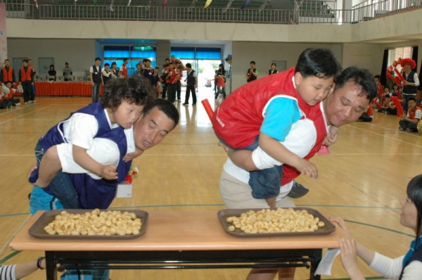 단체게임 가족계주 우리 친구들이 출발하고 관장님께서 1등으로 들어오시고 결과는 청팀 승리~!