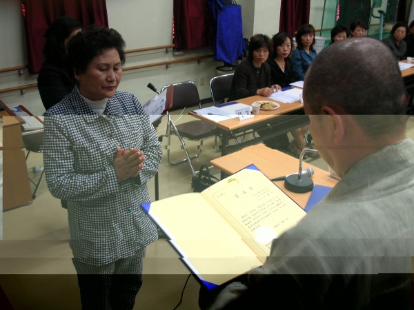 봉사단 단장님이신 이화춘님께 한국사회복지협의회 사회복지증진대회에 자원봉사자부문 공로상을 수상하고 계시는 모습입니다.