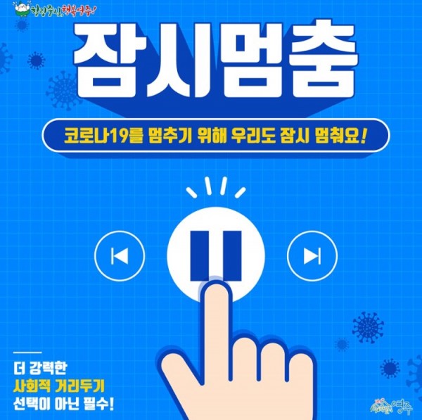 잠시 멈춤! 코로나19를 멈추기 위해 우리도 잠시 멈춰요! 페이지 정보 작성자 김지혜 작성일 20-11-24 16:20 조회3,129회 댓글0건 본문 -출처: 영주시청 이전글 다음글 목록