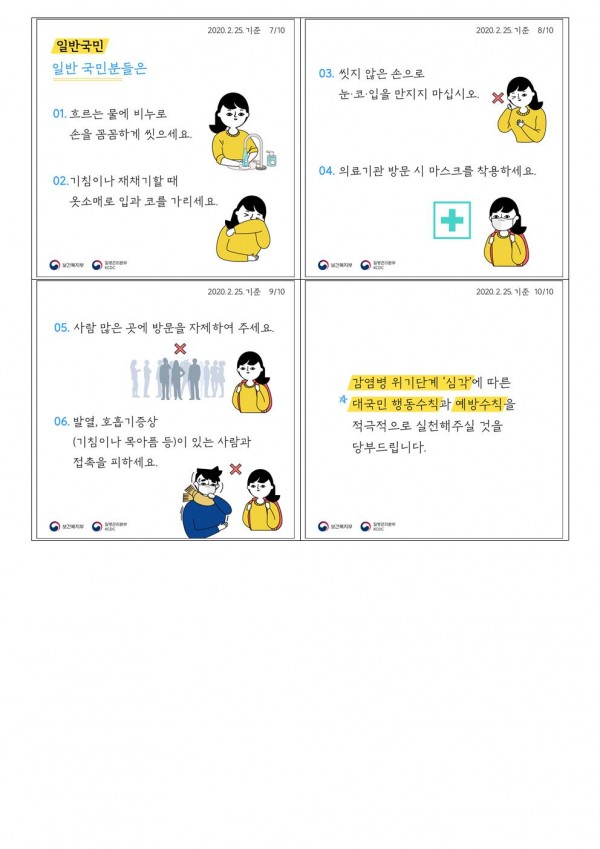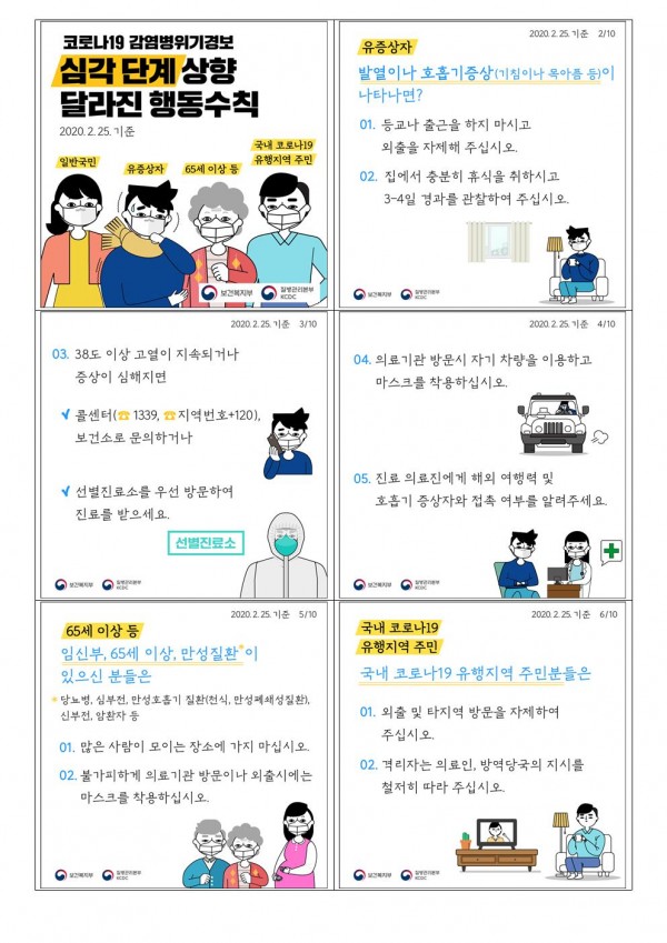 코로나19 감염병위기경보 '심각단계' 조정으로인해 달라진 국민행동수칙 안내